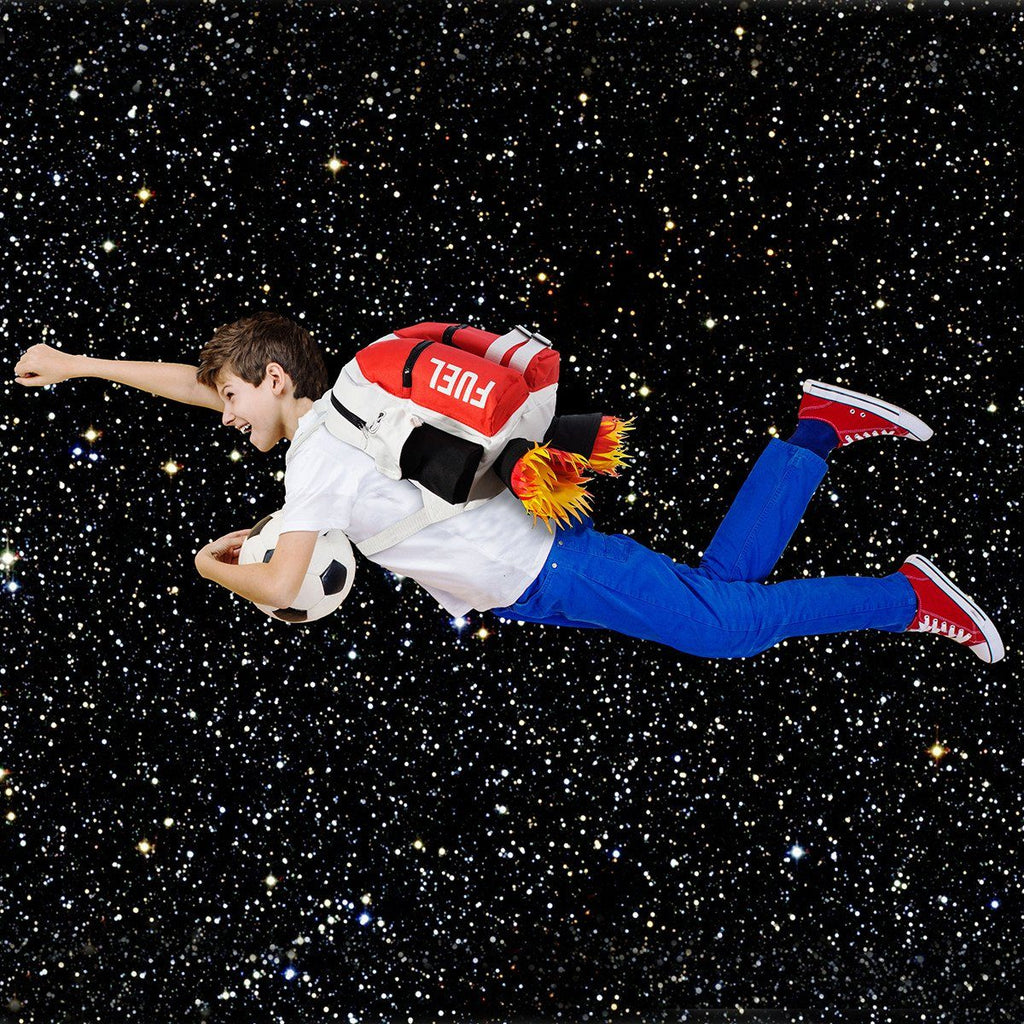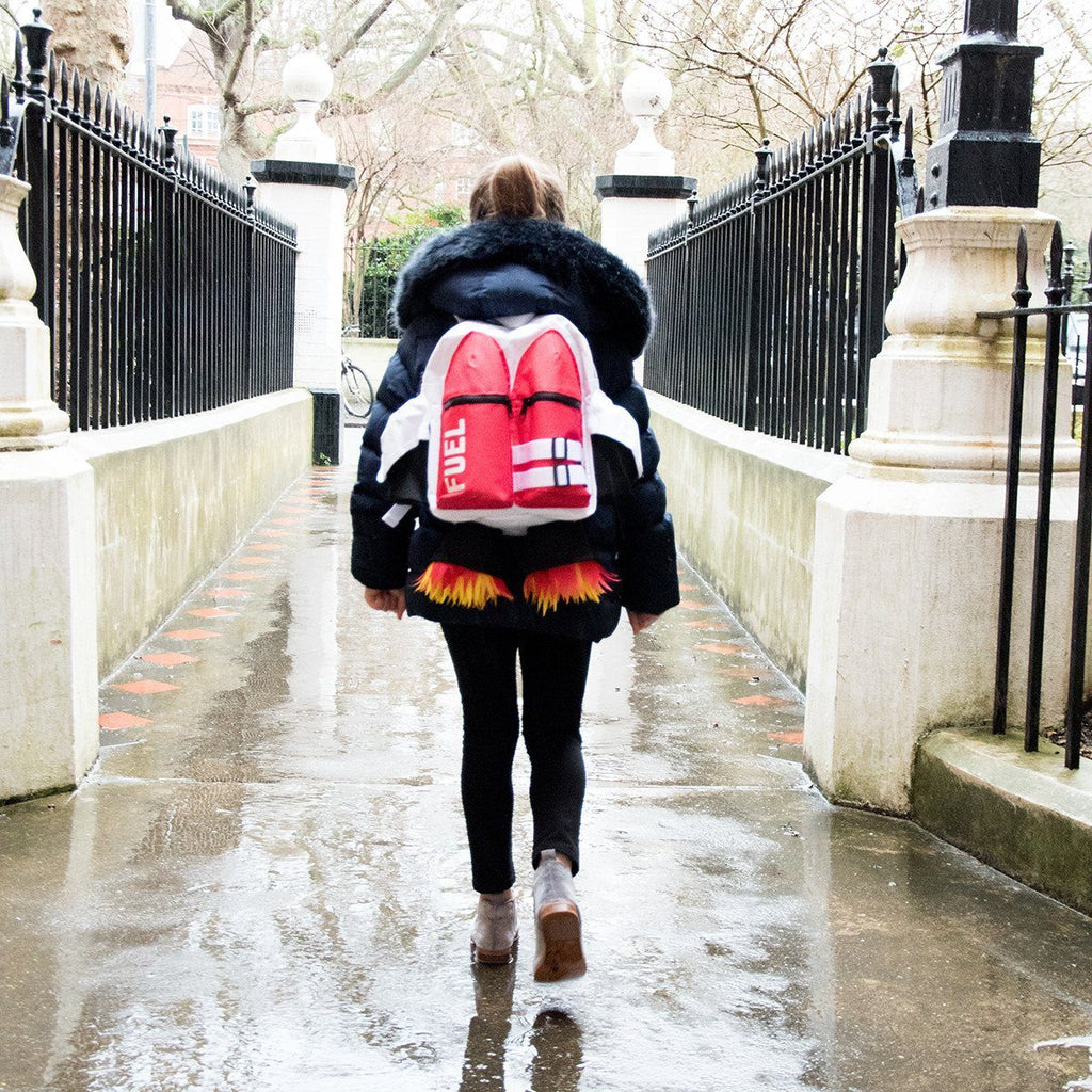 Backpack shaped like a jetpack. Polyester.