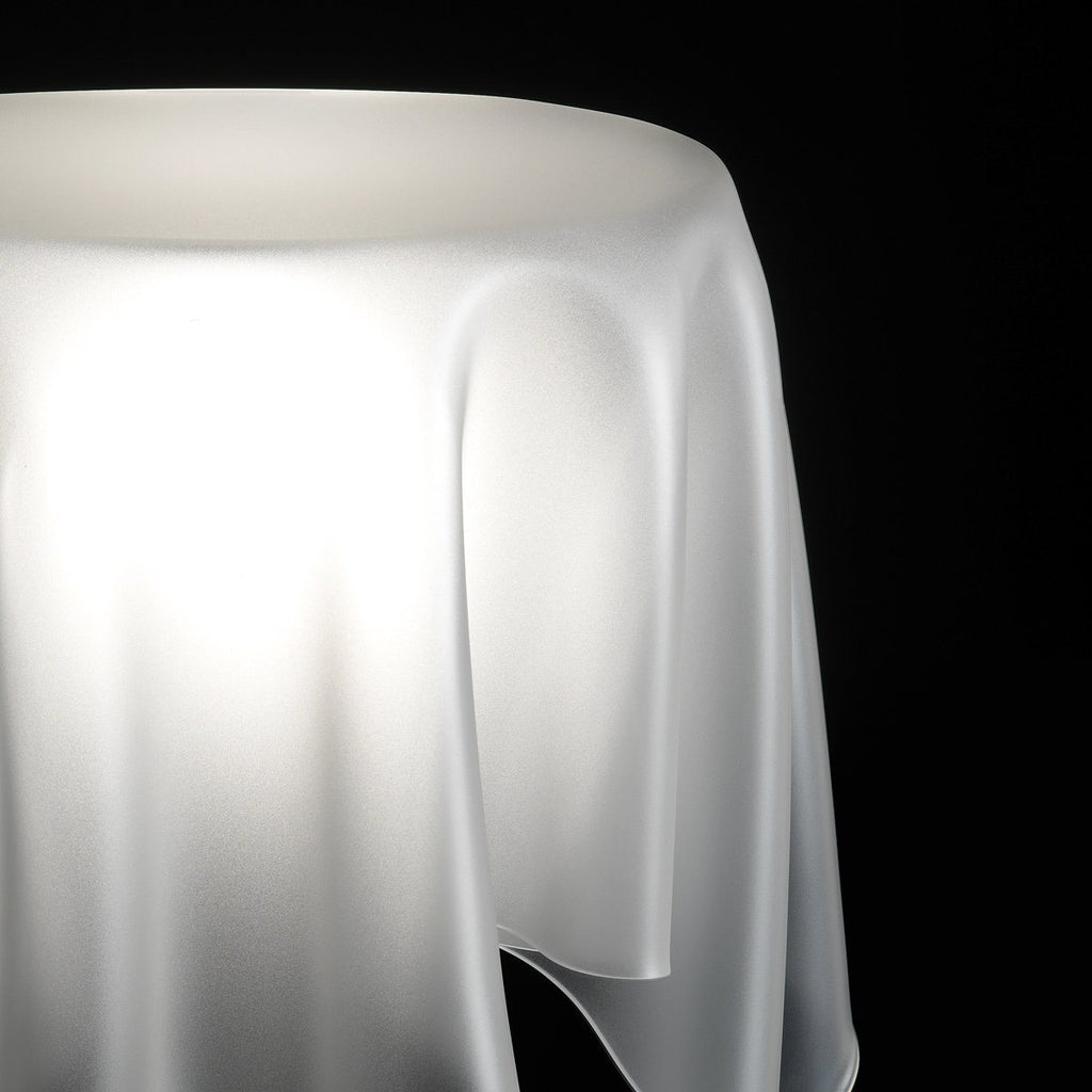 "One day I was passing a Café in Copenhagen. There were round tables with white tablecloths. Each cloth was square and almost touched the floor. I stopped and took couple photos. I then went to a plastic workshop, showed them the image and asked if it was possible to make such an object in plastic. The answer was no. But I continued my quest and after a few months some samples were ready. The result was Illusion, a stunning example of Symbolic Functionalism that has received an extremely enthusiastic reception from both the press and consumers." John Brauer.